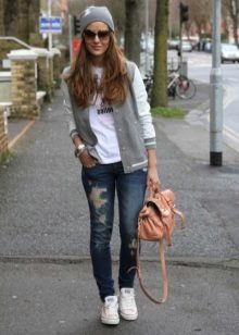 - Footwear. In terms of choosing shoes, a bomber jacket is very practical. If you wear boyfriend jeans, you can complement them with sneakers, with skinny jeans, pumps or stiletto sandals will look good. High-heeled shoes are perfect for going out, especially if you wear a skirt or dress. In the cold season, the bomber is combined with boots and boots. They can be massive, rude, similar to masculine, or elegant and feminine. It all depends on the image you choose.