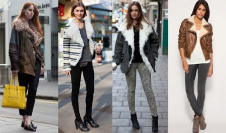 Choosing such a jacket, give preference to models with a fur collar that will warm you in our climate. If there is no fur on your bomber, wear it with a volume scarf to match the jacket.