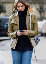 Khaki is now megapopular, and it is unlikely that fashionist’s wardrobes today do without things of this color. Such a jacket is the embodiment of a militaristic style in clothes, it will highlight the severity of lines and emphasize the silhouette.