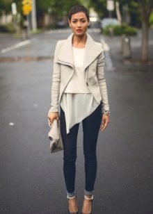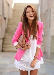 The compatibility of the white jacket with other colors is simply amazing.It can be worn with strict black trousers and sweatpants in bright acid tones. And the combination of a white jacket with the rest of the white clothing will create a magical airy and transparent look that will not leave anyone indifferent. It is only important that the styles of things are combined with each other.