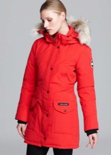 The red Alaska jacket is becoming popular. Practical and convenient, it will give you not only warmth and comfort in the cold winter, but also help to create a stylish image in the style of casual. You can combine it with any shoe. Accessories in the form of hats and scarves will also be very welcome.
