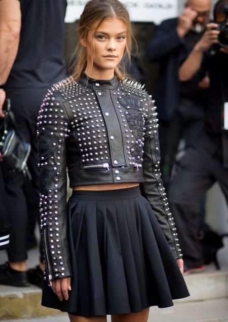 Leather is characterized by durability. That is why leather jackets are expensive. The most common model of leather can be called a leather jacket. She is associated with bikers and rockers, but despite this, she looks amazing with classic trousers and stilettos.