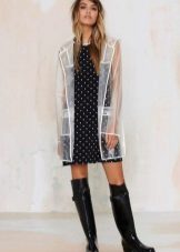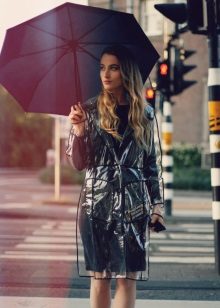 Transparent raincoats look very beautiful and elegant. Many of them have a contrasting edging of details: black, white and even multi-colored. There is a feeling of fragility, as if the figure was placed in a glass vessel.
