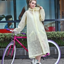 As a rule, disposable raincoats are made of polyethylene. The material is very thin and in this regard, such a raincoat quickly becomes worthless. This is due to its cheapness. Disposable models come with clasps and without them. Sleeves on a wrist are picked up on an elastic band.