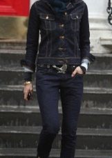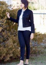 To create a business image, the jacket must be strict, seasoned style. In combination with classic trousers or a pencil skirt, and a white or light blouse, denim takes on an office look. High-heeled shoes can be used as a part to complete the look. Although the usual classic boats here will also be quite appropriate.