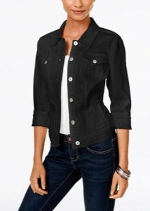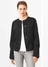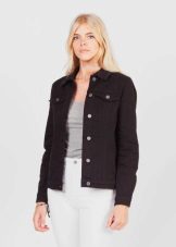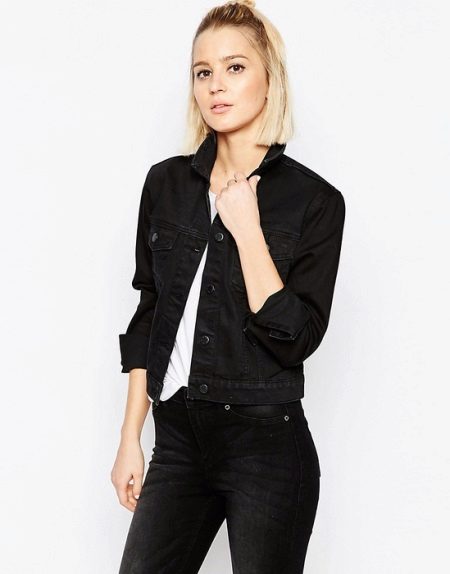 If you are a fan of jeans of classic styles, then surely pay attention to the model of a black denim jacket with a collar, patch chest pockets and a button closure. Just like a blue jacket, a black one will be no worse combined with many things. But, despite its “official” color, this model is not suitable for attending business events.