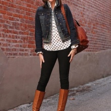 Warm black denim jackets deserve attention. Adding a little fur or synthetic winterizer under the main layer of denim, you can get a raincoat for autumn or a warm winter jacket. An additional detail in the form of a hood trimmed with light fur will “dilute” the black color of the jacket, and knitted elongated cuffs will not allow your beautiful hands to freeze in extreme cold.
