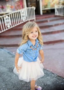 Today, a fashionable denim jacket can be seen on a very tiny fashionista, and on older girls. A beautiful, stylish, practical thing goes well with other items of clothing. Such a jacket can be worn both in jeans, and in an elegant dress, and in a tracksuit.