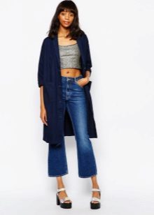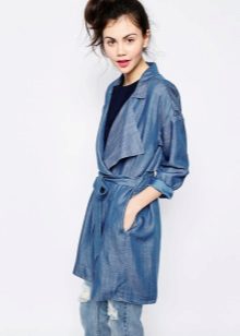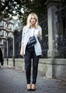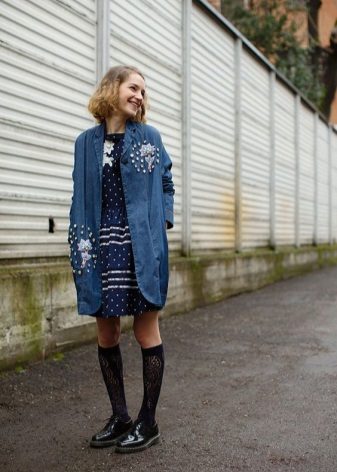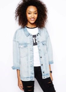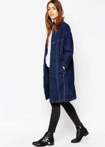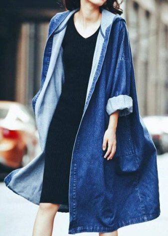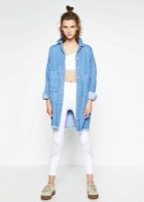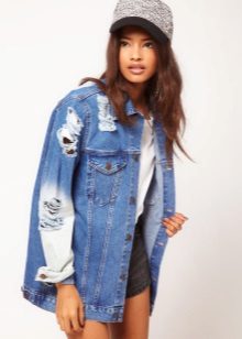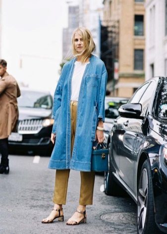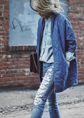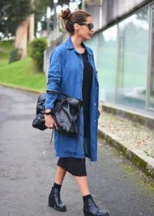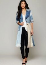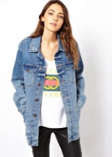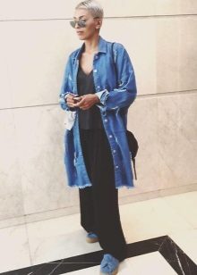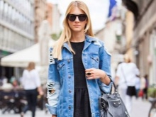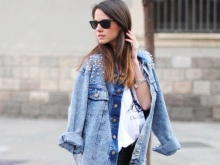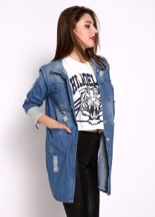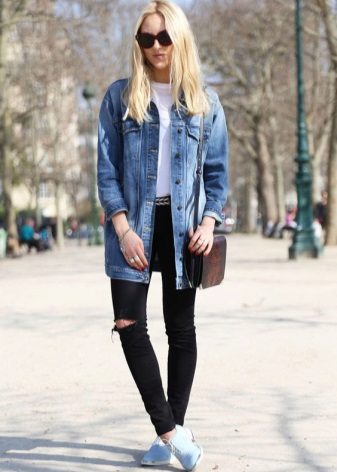 Like short denim jackets, long jackets look equally beautiful with skirts, and trousers, and with shorts, and even with dresses. However, only with long models can low-rise trousers be worn. Loose jackets with leggings look quite balanced.