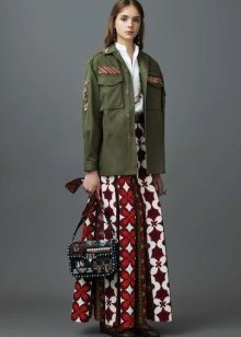 Models with numerous rivets look fashionable and dynamic.Bright models of long jackets are jackets with original acrylic patterns on the back, with beads, rhinestones or even with holes.