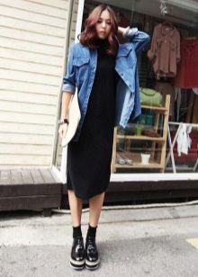 Very feminine and sensual ensembles are obtained with fitted denim jackets and with bright long dresses. You can add elegant shoes with a heel or platform to them. In cold weather, a denim jacket can be worn with a scarf. And, of course, do not forget to complete the look with stylish and fashionable accessories: bulk bags, bracelets, glasses, etc.