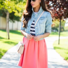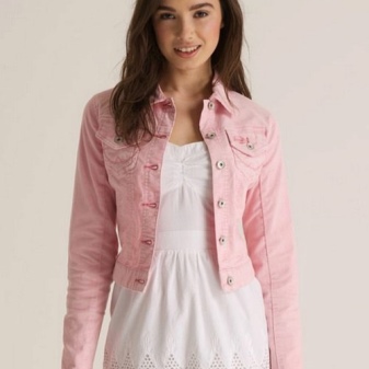 The color scheme may be different, today the trend of the model is yellow, white, black, raspberry, orange, light green and bright red.Each color looks elegant and saturated. A jeans jacket in contrast looks very nice. For example, a dress in a classic black and white version will suit a blue jacket. A white model of outerwear can be combined with a blue and red sundress.