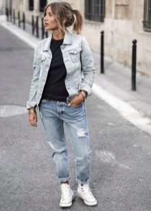 Sports enthusiasts simply cannot imagine their image without a short denim jacket. She looks great with sneakers and sneakers, shorts and breeches, as well as overalls.