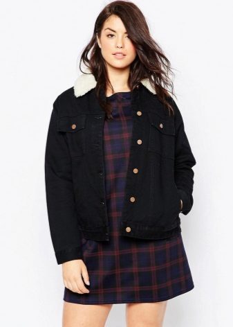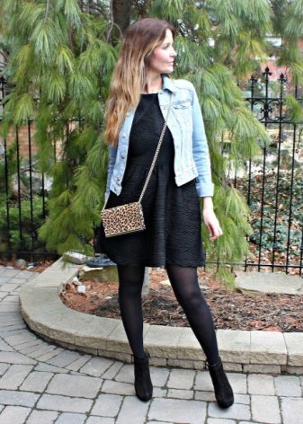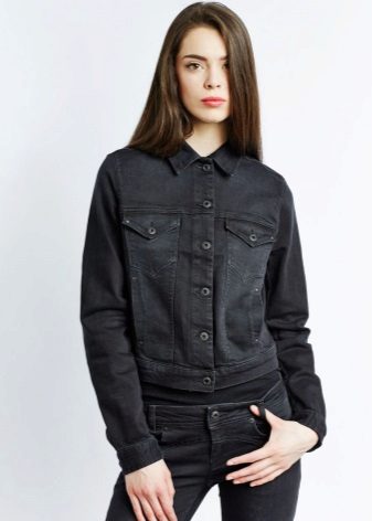 Another classic option is a black denim jacket. It can be used for unique ensembles with different things. This color scheme is chosen by girls with full forms. If you choose the right shade, shape and length of a denim jacket, then it will become a stylish accent when creating a bow in different styles.