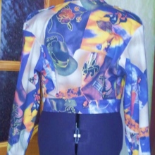 Jackets with colorful ornaments and patterns look very gentle and romantic. In combination with a fluffy skirt of medium or short length, it is quite suitable for a date in the open air or a fashionable party.