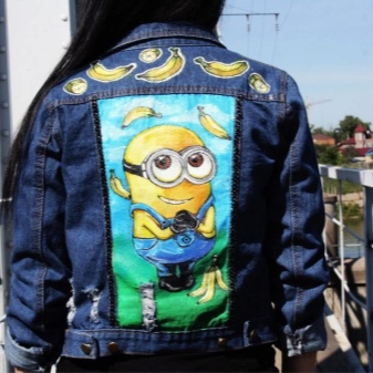 Jackets with the image of famous people, heroes from cartoons, comics, for example, Mickey Mouse, Minions, etc. look quite impressive. Here, with the help of paint and the original font, you can write some word or phrase.