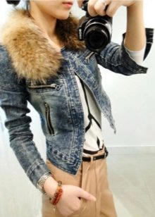 - Lightweight jeans designed for late spring and summer will not warm you in cold weather. Maximum, it can be thrown over the basic clothes on a cool summer evening. And, despite the fact that the fur trim is not very appropriate in hot weather, in some models of denim jackets it looks very stylish and elegant.