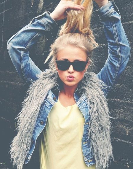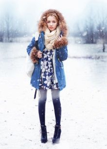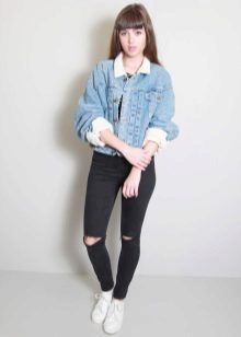 Denim jackets with fur are combined with almost any clothing. Fans of urban clothing will appreciate bows with tight-fitting trousers or leggings. As a rule, accents in such images are accessories - bags, gloves, jewelry.