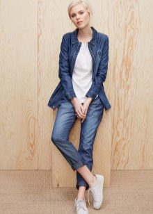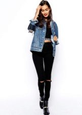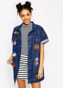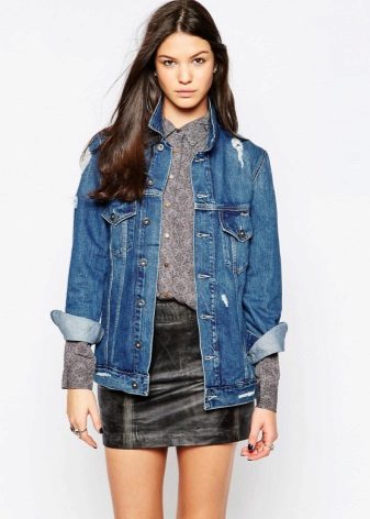 An elongated denim jacket is a stylish trend this season. She will help to create stunning everyday, elegant or evening bows. An elongated denim jacket, decorated with buttons, zippers or rivets, can be used to embody fashionable bows in any style.