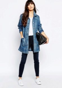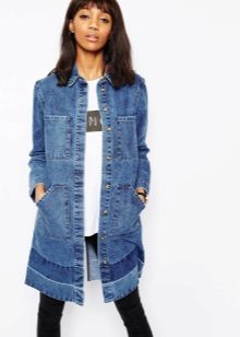 An elongated denim jacket is represented by a wide variety of models, so every girl will be able to choose the style that emphasizes the advantages of her figure, hide the flaws.