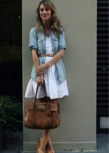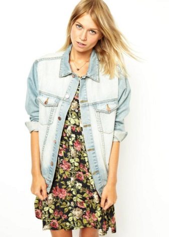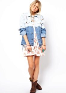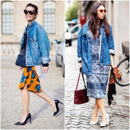 To embody a feminine bow, which is suitable for a romantic date, it is worth combining a long denim jacket with dresses. It goes well with a long jeans jacket dresses to the floor.