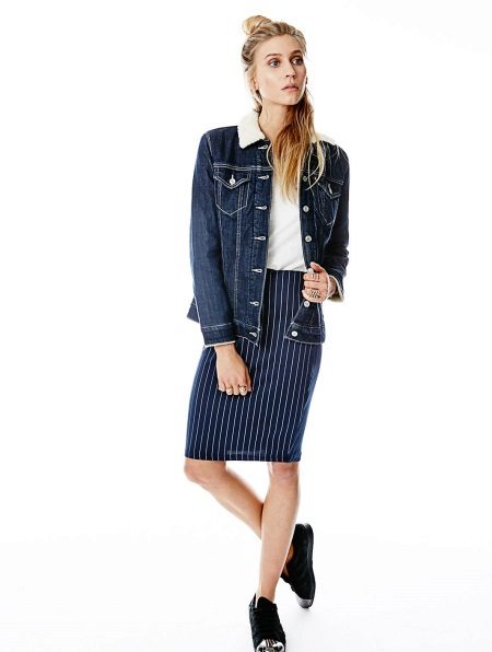 Sexy women who want to attract male attention usually wear long denim jackets with miniskirts or shorts. A lace top or t-shirt will fit perfectly with this ensemble. You can play in contrast and combine delicate lace fabric with rough denim. For a bright bow, a tutu skirt and a knitted shirt are suitable.