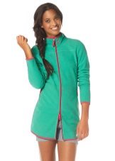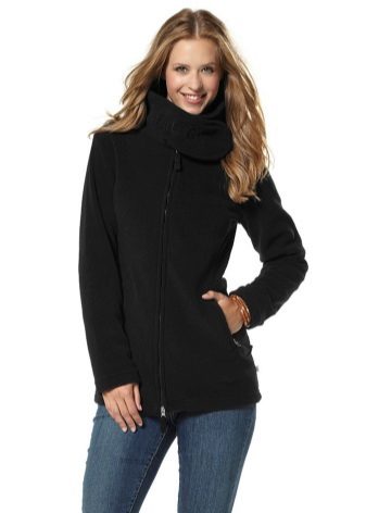 Fleece is a very soft and elastic material that fits perfectly on any figure. Owners of magnificent forms should not deny themselves the pleasure of acquiring a wonderful, soft and warm fleece jacket. In the new season, designers offer elongated models of straight and fitted cut. Actual models with sleeves ¾ and jackets, made in a combination of several materials.The color scheme can be different: cherry, blue, beige, black, green and other colors and shades.