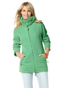 The lineup of these jackets is wide and varied. The hood can have a different depth and shape, the jacket itself can be plain or decorated with various decorative elements. Jackets fasten with a zipper, buttons, buttons, etc. Fleece is very stainable, which gives even more opportunities in the manufacture of modern models.