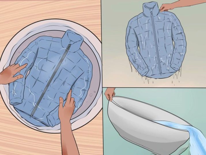 - After you carefully treat the entire surface of the jacket, you can proceed to rinse. It will be necessary to rinse several times, collecting clean water each time. This process is difficult, since the weight of the jacket, after completely wet, increases significantly.