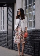 You should not be limited only to dresses, you can pay attention to the variety of skirts. A beige jacket can be combined with yellow, purple, red, blue or emerald models, but the choice of style already depends on the type of figure.