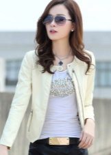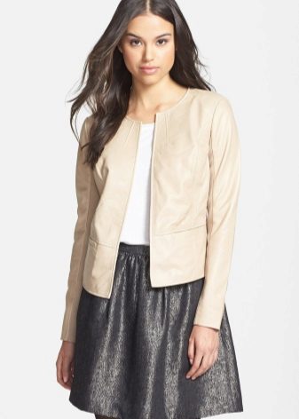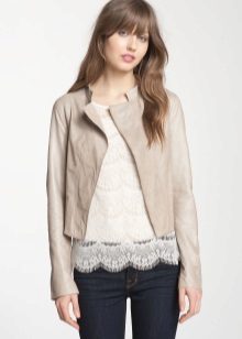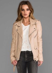 Beige color has many shades. Today you can buy a leather jacket in a light brown, sand, light beige or ivory color. Each tone has its own advantages, but each girl should make a choice individually.