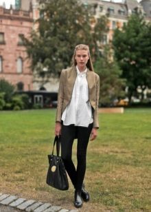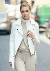 For everyday life You can also use bold combinations with a beige leather jacket.