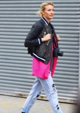 In the voluminous bomber, you can feel like a little girl who stole a jacket from her boyfriend, or an elegant girl whose shoulders were covered from the cold by a respectable gentleman.