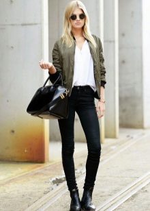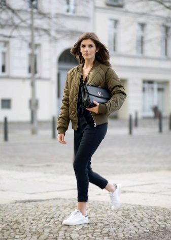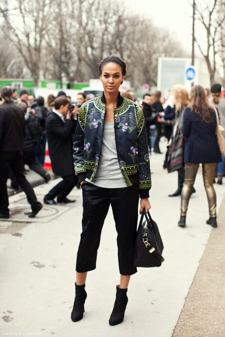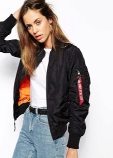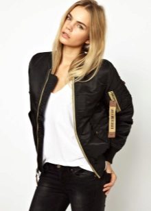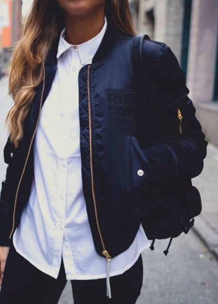 The trend of men's style in women's wardrobe appeared relatively recently. Gradually, the weak half of humanity began to wear trousers, then rough boots, military-style clothes, and bombers. The latter from ordinary jackets are distinguished by the presence of elastic at the bottom of the product and on the cuffs and the absence of internal pockets. Also, the back of such a jacket should be sewn from solid material without seams.