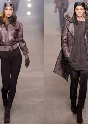 Manufacturers are increasingly using combination as a way to make things more unique. The first in popularity is the combination of different types of raw materials in one product, for example leather and suede, leather and cashmere. The second most popular type of combination can be safely called the combination of two or more textures of the same skin type, for example, sheep skin in combination with snake skin. Thus, designers make women's outfit brighter and more interesting.