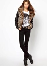 A peplum leather jacket looks perfect with a narrow belt and a small buckle. A feature of this season are unusual prints and vivid drawings. For example, courageous individuals can wear a jacket with a leopard pattern on the sleeves, as well as with a large bow made of guipure, which is attached to the collar.