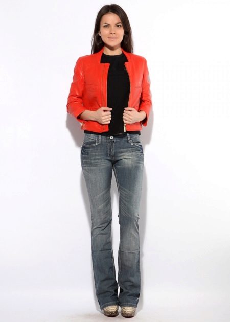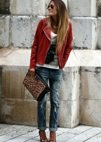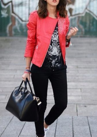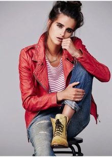 A red leather jacket suits bright people who always want to be in the spotlight. This element of the wardrobe must have girls with an impulsive and cheerful character, because it will help to show your personality.