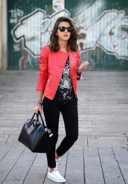 Women's leather jacket occupies an important place in the wardrobe of every girl and is often used to create effective bows.