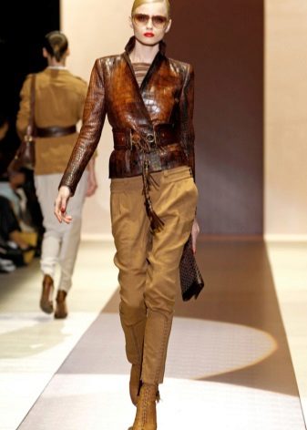 - Jackets in the style of a safari will perfectly decorate the image of a girl with a rectangle-type figure.