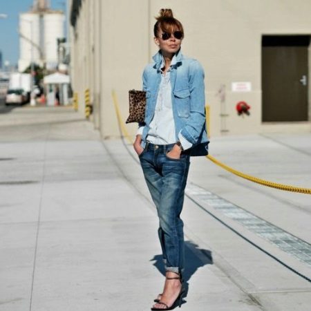 Denim jackets are in high demand for creating stylish bows for every day. Such a model will be relevant both for work and for walking with friends.