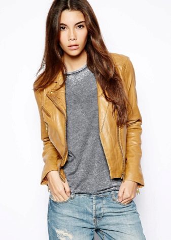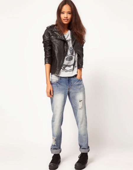 Motorcycle jackets can be combined not only with leather pants, heavy boots and shiny helmets. Such a jacket may well be the only thing in a biker style in the kit. In everyday life, you can wear it with your favorite jeans, T-shirts and sneakers.