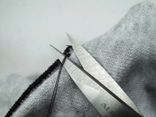 At the end of the thread we tie a knot, which we hide in the first stitch under the patch. Sewing on the patch is best with hidden stitches. Try to make stitches small and not very frequent. After a circle, we make a loop around the last stitch, tighten the knot and hide it next to the first. Now you can cut the thread and enjoy the work done.