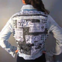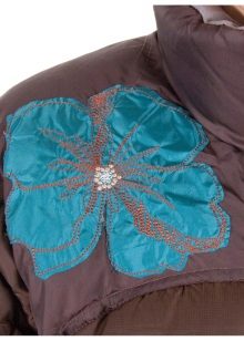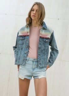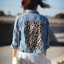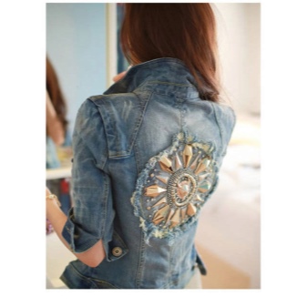Large stripes look best on the back of the jacket - this is exactly the case when instead of several small images one should choose one large. Patches on the back in the form of wings, birds or representatives of the cat family are very popular with girls.
