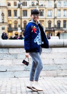 Jackets with stripes can be worn with a variety of things - it all depends on the style and style of the jacket and what is depicted on the stripes. Almost all of these jackets go well with jeans, T-shirts, sneakers or high boots. Skinny trousers or a short skirt will also be in harmony with a jacket decorated with stripes.
