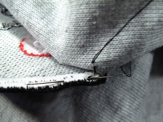 Now we take a needle with a thread in the tone of the patch (or contrasting - as you like more) and begin to carefully sew the patch, folding the thread in half for strength.