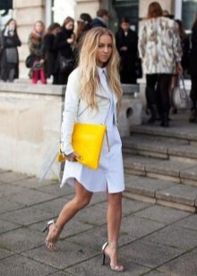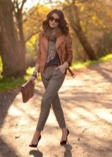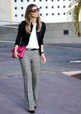 If the jacket is equipped with a wide belt, then it is necessary to bring the silhouette closer to the hourglass. Fluffy skirts and trousers will cope with this task.
