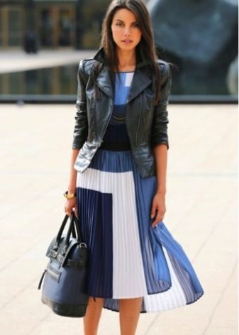 A light short dress can be worn under a windbreaker and jacket. If the style of the jacket is fitted, then narrow trousers look great with it.