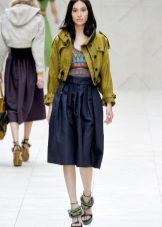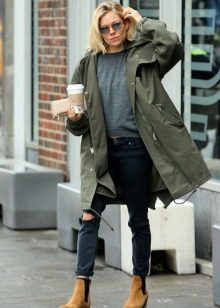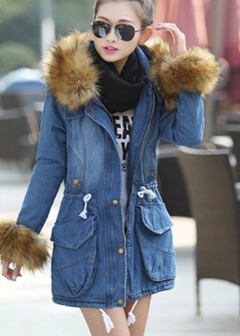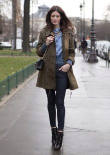 With shortened models, flared maxi skirts look good, and with a long parka you can wear a tight mini. Denim parkas are not recommended to be worn with jeans, provided that their shade matches.