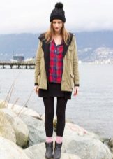 Since almost all parks have a hood, a hat with such a jacket is often not worn at all. In bad weather, it is worth picking a hat to the park that will be neutral in style and style. A great option would be hats made of bright-colored knitwear, but without decoration. The warm cap looks interesting with the park, and in severe frosts such a jacket goes well with a large knit hat.