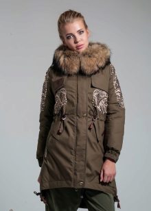 Most jackets of this type are represented by simple models without any decoration, but recently there are often products in which decoration is used decor. The most common addition to a parka jacket is fur trim. Much less often use applications, embroidery, rhinestones or other decor.
